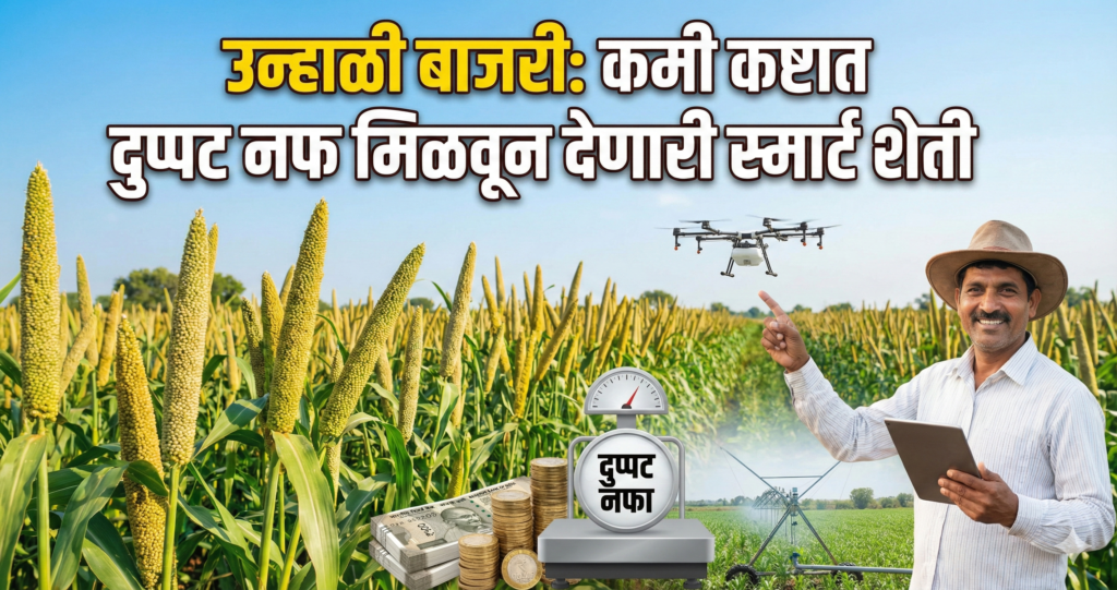 उन्हाळी बाजरी हे कमी कष्टात आणि योग्य तांत्रिक नियोजनाने भरघोस नफा मिळवून देणारे पीक आहे. बीजप्रक्रिया, अचूक खत मात्रा आणि ‘पंढरी’ सारख्या वाणांची निवड यामुळे शेतकरी केवळ धान्यच नव्हे तर दर्जेदार हिरवा चाराही मिळवू शकतात. या स्मार्ट शेती तंत्राचा अवलंब केल्यास उन्हाळ्यातील शेती अधिक किफायतशीर होईल.
