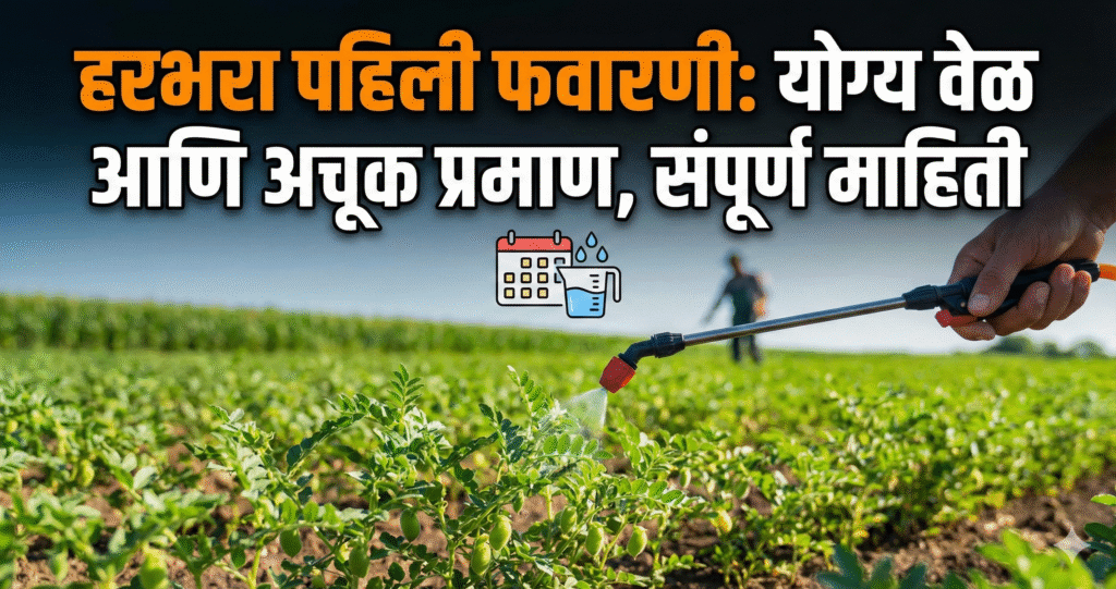हरभरा पिकातील पहिल्या फवारणीसाठी सर्वात महत्त्वाची गोष्ट म्हणजे तिची वेळ. ही फवारणी पेरणीनंतर २० ते २५ दिवसांनी करणे अत्यंत आवश्यक आहे. ही नेमकी तीच वेळ आहे, जेव्हा पीक आपल्या वाढीच्या महत्त्वपूर्ण टप्प्यात, म्हणजेच फुटवा अवस्थेत असते. या काळात केलेली फवारणी झाडाला चांगली वाढ आणि फुटवा मिळवण्यासाठी थेट मदत करते, ज्यामुळे उत्पादनाचा पाया भक्कम होतो.